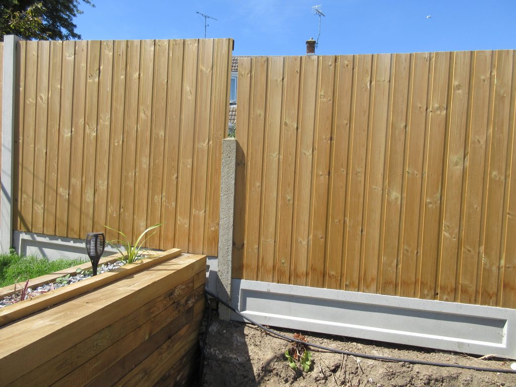 How and why the short concrete post was installed, I have no idea. Not only did it not match the others, it was far too short – and yet, to exchange it now would be very difficult. The concrete gravel board to the inside of the sleeper wall is sloping, whilst the right-hand panel is more or less level across the top. Perhaps is was an original post that somehow remained as a temporary measure?