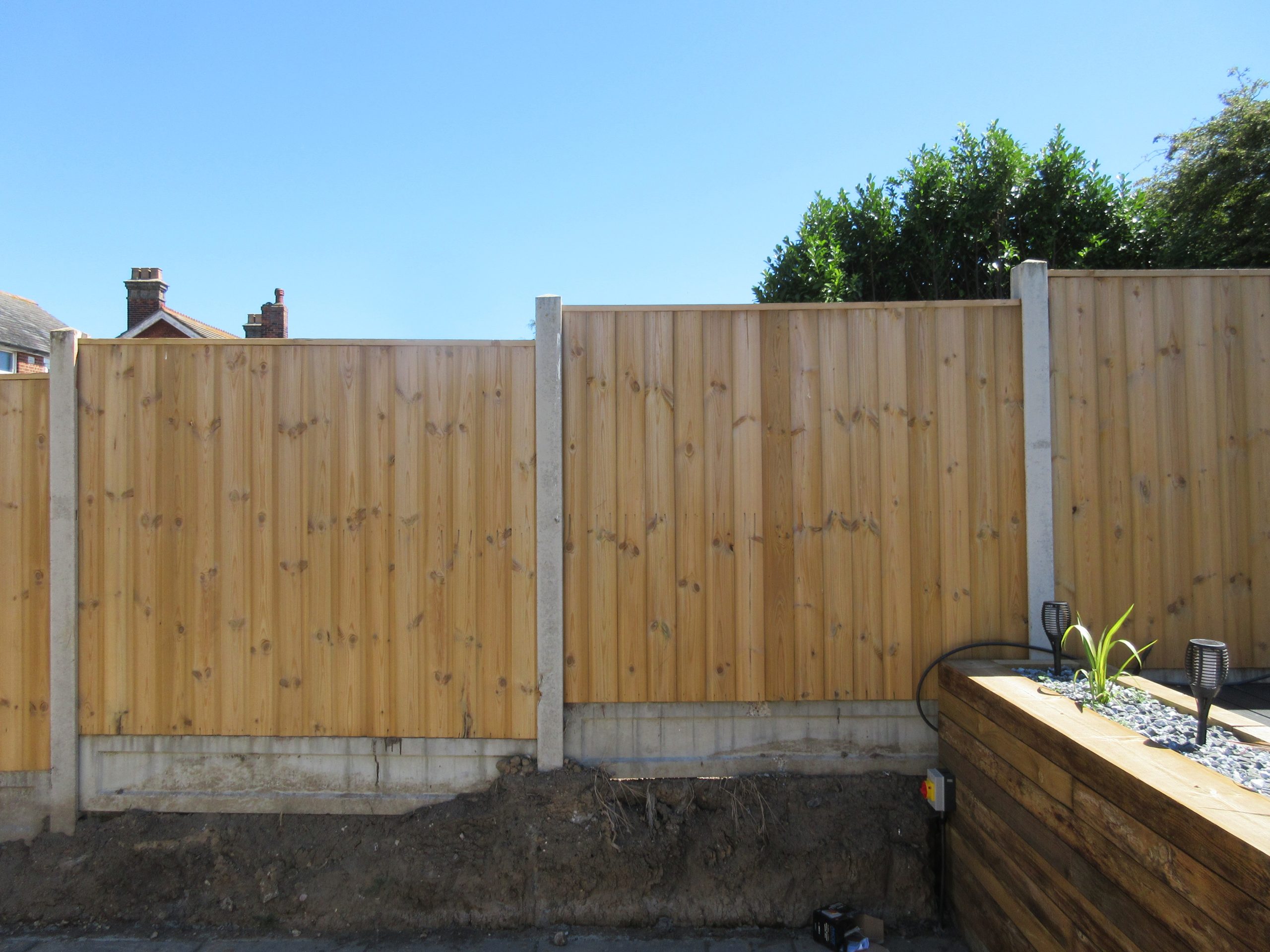 This was a new project, including excavating the rear garden to new levels, and erecting a new fence to one side of the garden. By definition, by excavating (both lower and upper terraces were lower than the neighbouring sites by the time the grading had been completed) there was a requirement to retain the soil on both sides. The left-hand side had existing fencing which was left in situ, whilst the right had all new fencing.